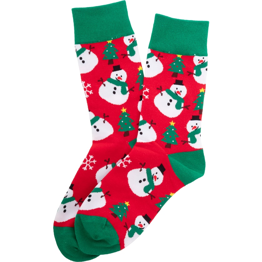 Julestrømper med ulike motiv. Strømpene er laget av 73% bomull, 25% RPET og 2% spandex. Du kan blande fritt mellom størrelsene 38-42 og 43-46. Trykket gjøres på papirbanneret rundt hvert strømpepar.