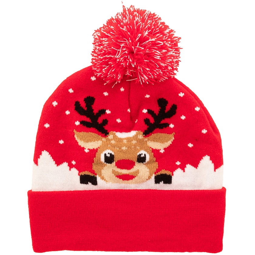 Strikkelue med julemotiv. Luen som gjør at du blir midtpunktet på julefesten!