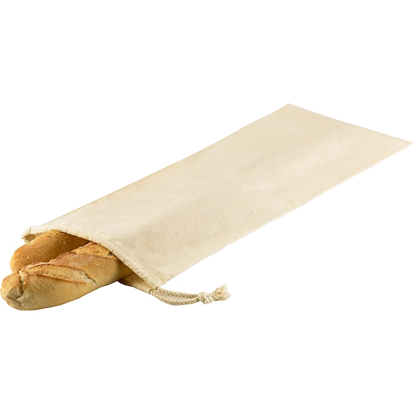 Brødpose i naturfarget bomullstøy utstyrt med glidelås Posen er tent til bruk når man handler brød på butikken. Bestill brødposer med trykk hos Axon Profil!