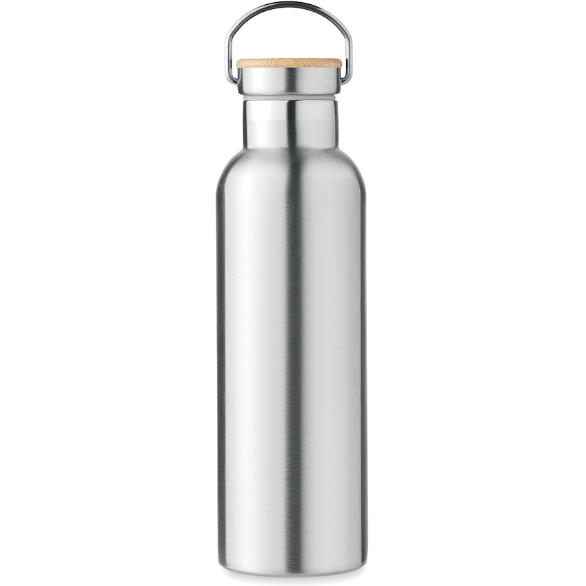 Termos i elegant design med lokk som har innslag av bambus. Håndtaket på lokket gjør det lett å bære flasken i hånden. Velg mellom trykk eller lasergravering.