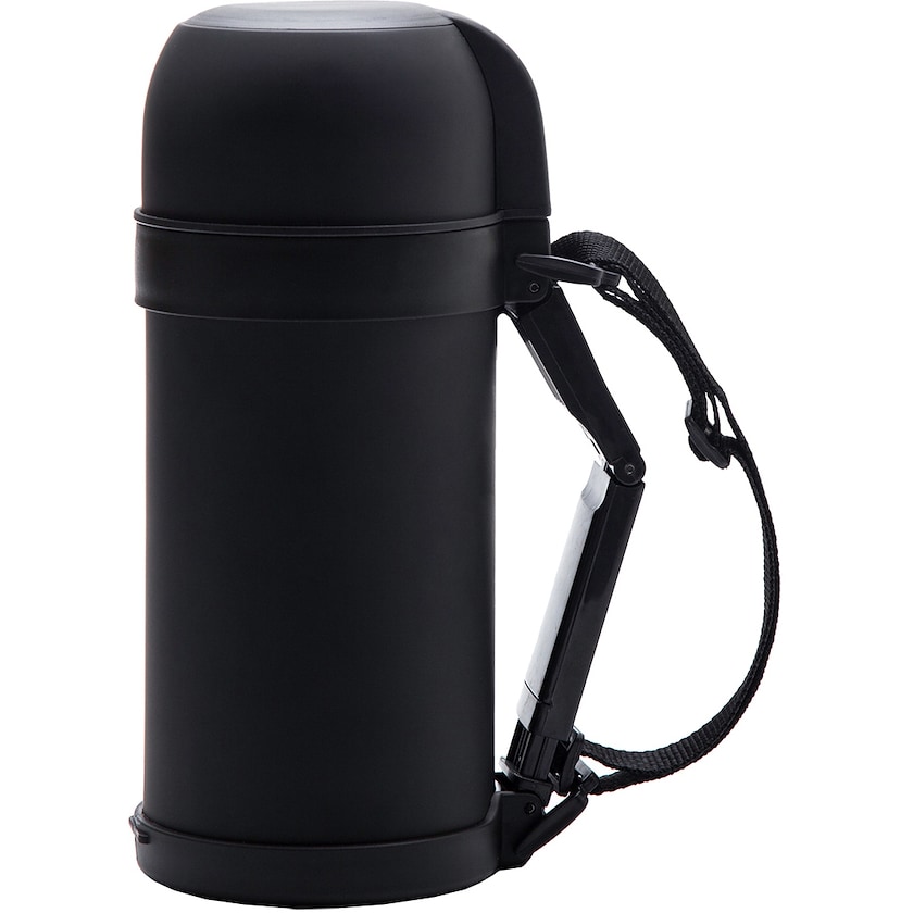 Stor termos med robust konstruksjon. Håndtaket er sammenleggbart. Oppå er det en praktisk kopp. Et godt valg for deg som vil ha en termos som tåler tøffe tak.