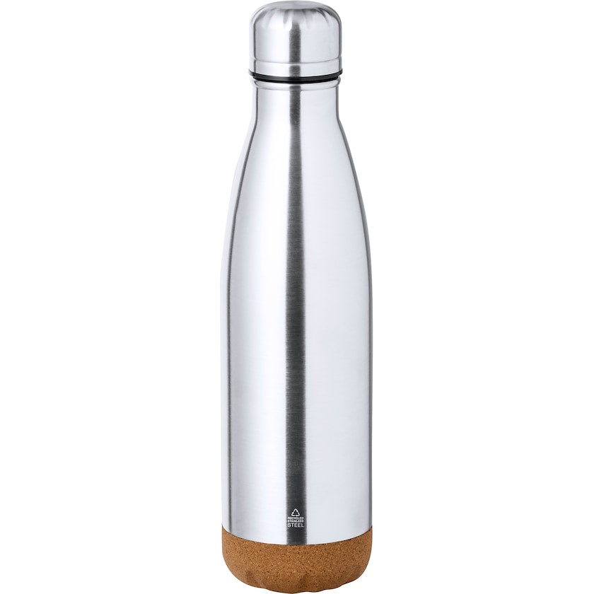 Termos av resirkulert rustfritt stål med bunn av kork. Spencer rommer 50 cl. og har doble vakuumisolerte vegger. Et symbol på forsiden viser at den er laget av resirkulert, rustfritt stål.