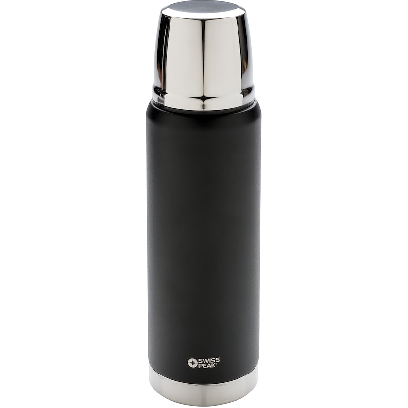 Eksklusiv 0,5 liters termos fra Swiss Peak. Swiss Peak Elite har doble vegger og er laget i rustfritt stål i høy kvalitet. Innsiden er kobberkledd for bedre bevaring av varme. Termosen holder varme drikker varme i opptil 8 timer og kalde drikker i opptil 24 timer. Håndvask.