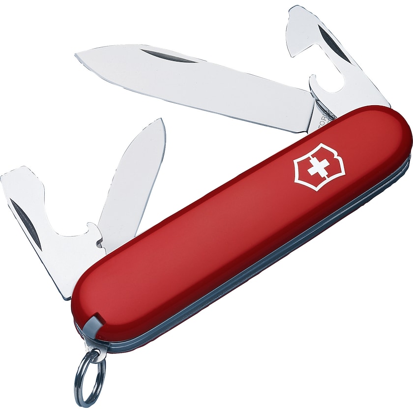 En av Victorinox mest ikoniske kniver. Victorinox Recruit har 10 funksjoner. Den har blant annet et stort og et lite knivblad, et kombinasjonsverktøy som fungerer både som flaskeåpner, stor skrutrekker og kabelkniv, et annet kombinasjonsverktøy som fungerer som boksåpner og liten skrutrekker.