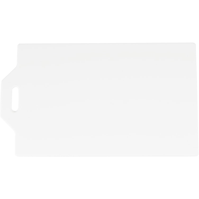 Rektangulær brikke med inntrykt bakside med plass til adresseinformasjon.