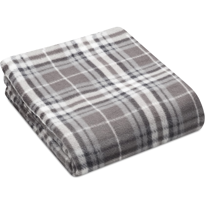 Miljøvennlig skotskrutet fleecepledd. Pleddet er laget av RPET, dvs. resirkulerte PET-flasker. Trykket gjøres på omslaget.