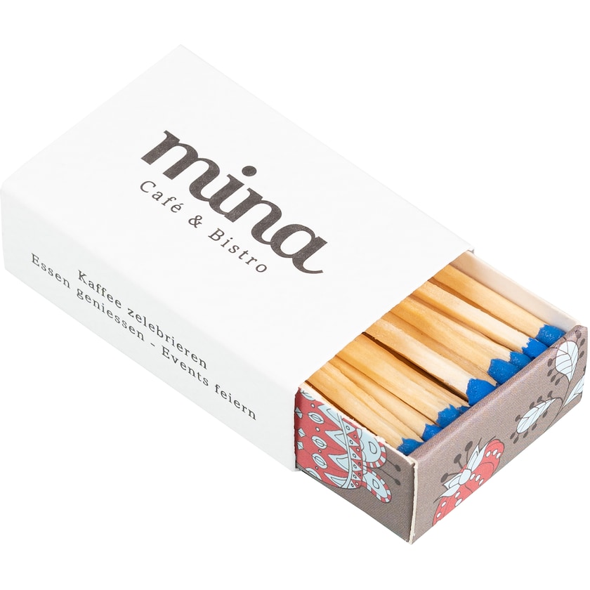 Digitaltrykket fyrstikkeske som kan kjøpes fra kun 1000 stk. En perfekt modell for deg som vil ha en klassisk fyrstikkeske i lite volum og med litt kortere leveringstid. Trykket gjøres i CMYK. Du velger selv mellom 16 forskjellige farger på fyrstikkhodene og 3 forskjellige trefarger.