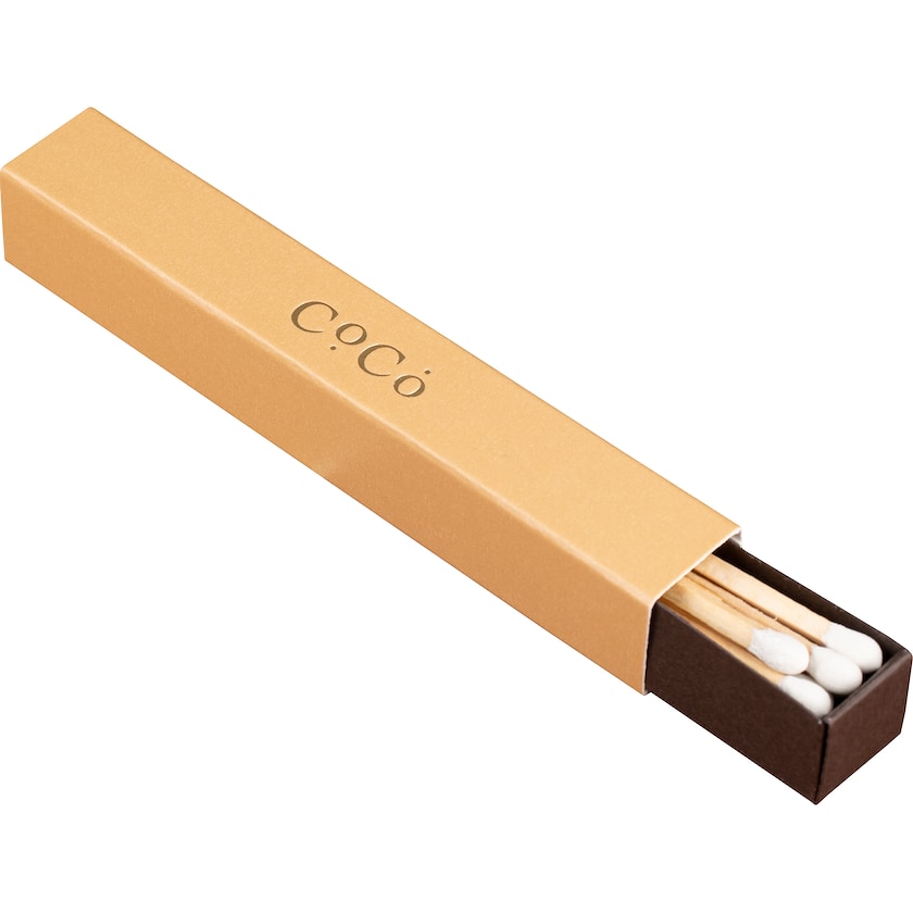 Elegant fyrstikkeske med ekstra lange fyrstikker. Lengden på fyrstikkene er 95 mm. Trykk i maks tre farger gjøres i henhold til pantoneskalaen og deretter i CMYK. Du velger selv mellom 16 forskjellige farger på fyrstikkhodene og 7 forskjellige trefarger.
