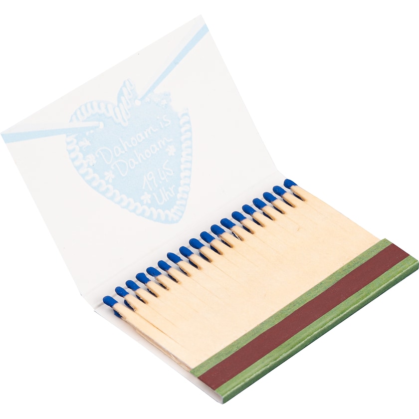 Fyrstikkbok i rektangulær form som rommer 36 fyrstikker. Trykk på innsiden er inkludert i prisen. Trykk i maks fire farger gjøres etter pantoneskalaen og deretter i CMYK. Du velger selv mellom 16 forskjellige farger på fyrstikkhodene og 7 forskjellige trefarger.