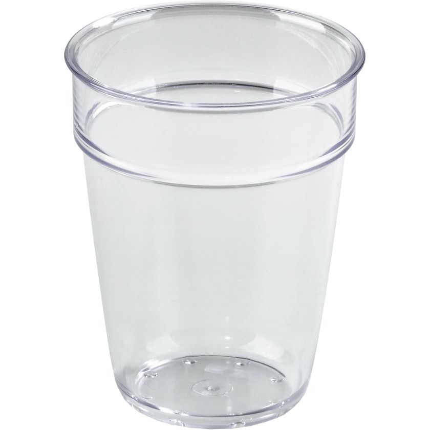 Plastglass som kan stables. Passer til alt. Kun trykk i 1 farge er mulig.