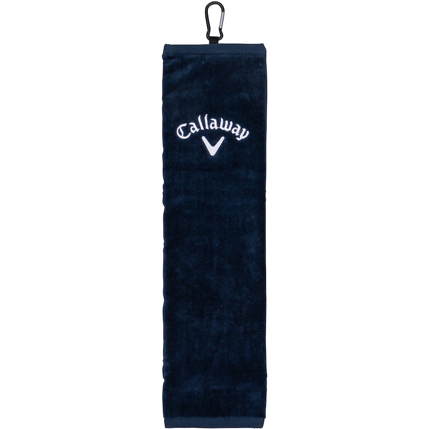 Luksuriøst golfhåndkle fra Callaway. Golfhåndkledet er laget av et kraftig 500 grams bomullsstoff og er brettet tre ganger. Håndkledet er forhåndsmerket med logoen til Callaway, og din egen logo appliseres med broderi.