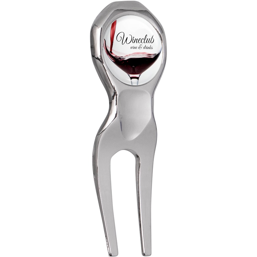 Vakker og funksjonell greengaffel av metall. Trykket plasseres under et beskyttende epoksylag som gir hele greengaffelen et elegant utseende.