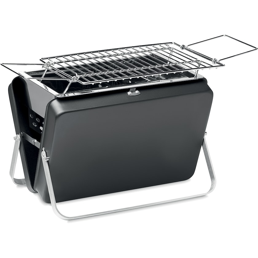 Bærbar grill av rustfritt stål. Når grillen ikke er i bruk, kan den foldes praktisk sammen. Perfekt til utflukten! Merking gjøres med lasergravering.