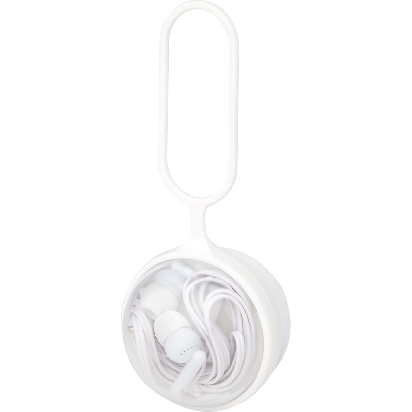 3-i-1 ladekabel og hodetelefoner i et smart futteral. Futteralet er utstyrt med en silikonrem. Hodetelefonene har en 3,5 mm plugg.