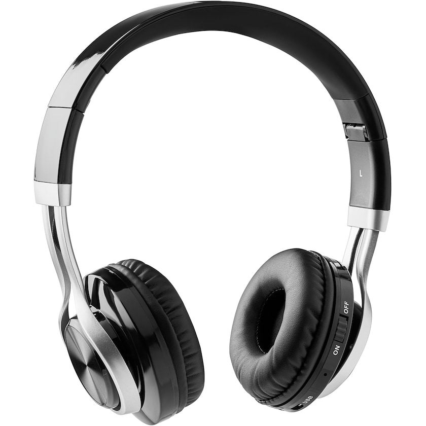 Trådløse hodetelefoner av førsteklasses kvalitet. Hodetelefonene har 6 timers spilletid på én lading. Mikro USB-kabel inkludert. Trykk kan gjøres i maksimalt to farger.