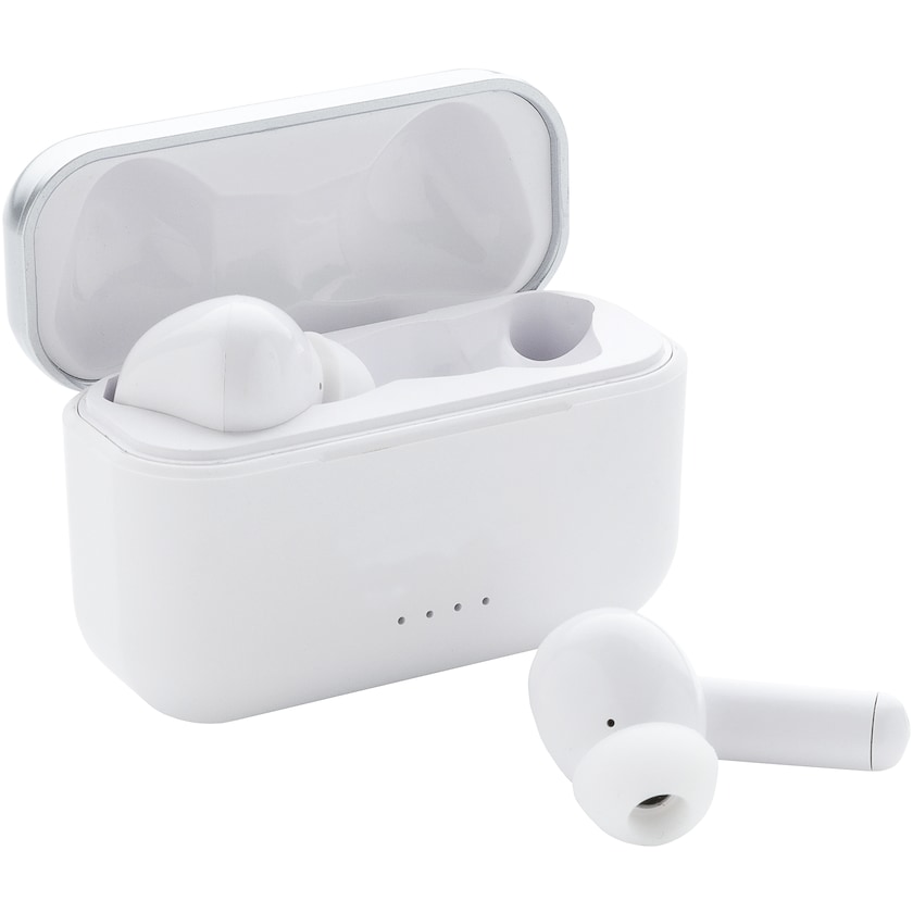 Trådløse hodetelefoner med den nyeste teknologien. Hodetelefonene lades i det inkluderte etuiet. Batteriet lades på 1,5 timer via C-uttaket. Etuiet kan også lades ved å legge den på en trådløs lader. Spilletiden er 6 timer ved middels volum og standby-tiden er 40 timer. Leveres med silikonpropper i tre størrelser.