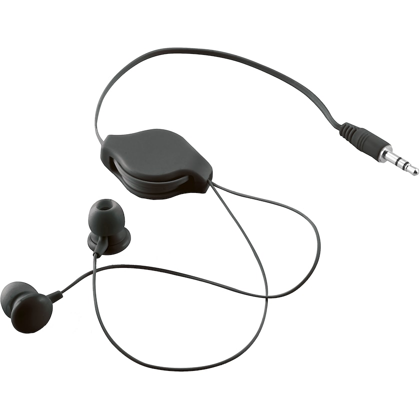 Utdragbare in-ear hodetelefoner. Hodetelefonene leveres i et sort non-woven futteral.
