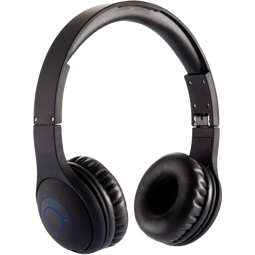 Behagelige Bluetooth-hodetelefoner som kan legges sammen når de ikke er i bruk. Leveres i et oppbevaringsfutteral med glidelås. Takket være at hodetelefonene kan legges sammen er de lett å ha med seg overalt. Trykket skjer på oppbevaringsfutteralet.