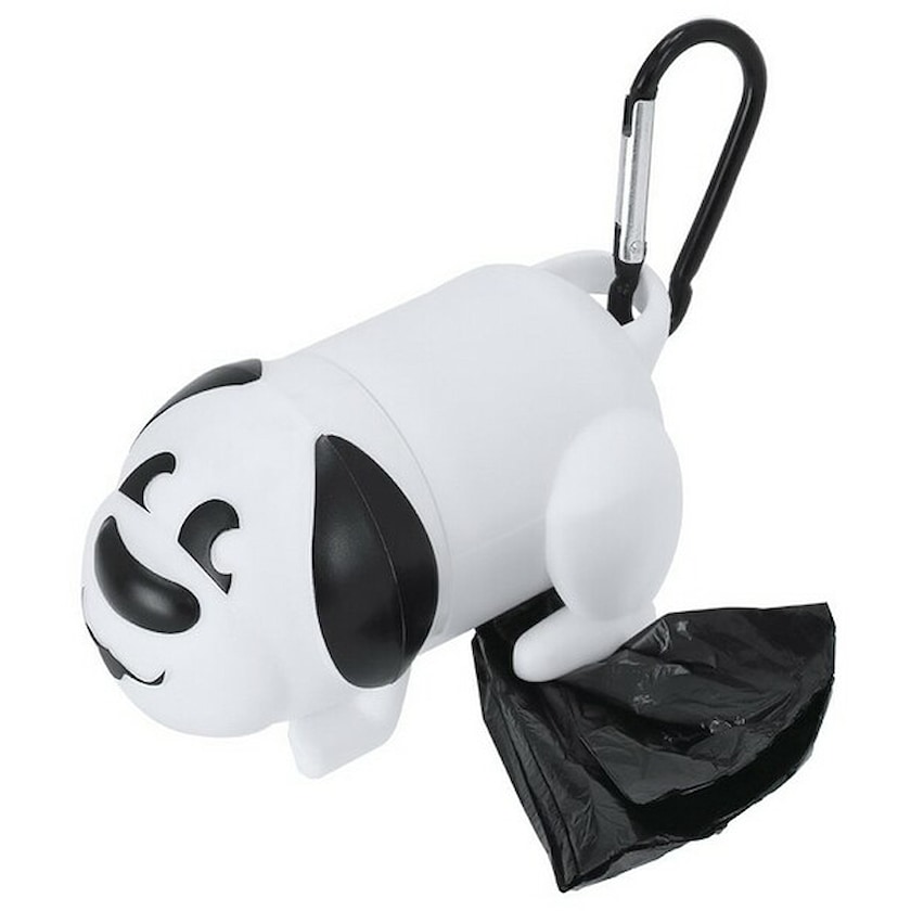 15 stk hundeposer i hundeformet beholder. Beholderen har en karabinkrok.