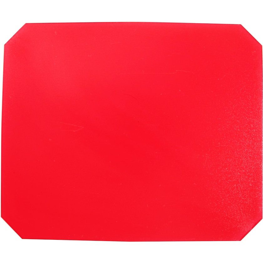 Transparent isskrape i polystyrénplast og med kappede hjørner.