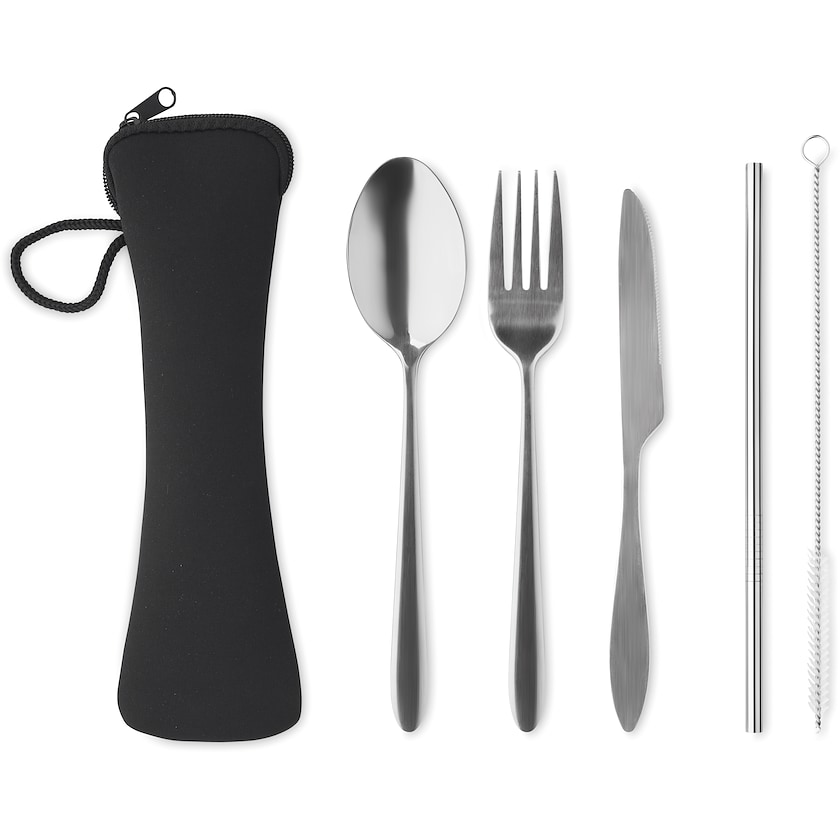 Sett med bestikk av rustfritt stål. Leveres i oppbevaringspose som påføres trykk etter ønske.