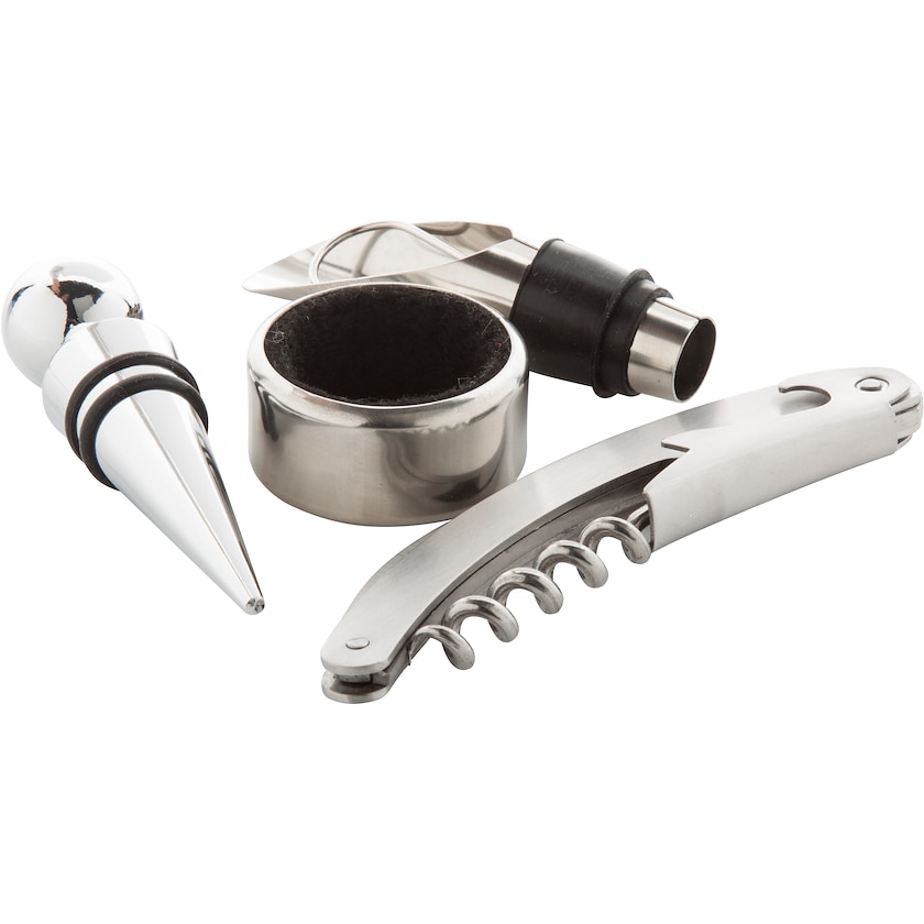 Vinsett i fire deler i gaveeske. Inneholder korketrekker, flaskestopper, dråpering og dråpekork. Lasergraveringen skjer normalt sett på korketrekkeren.