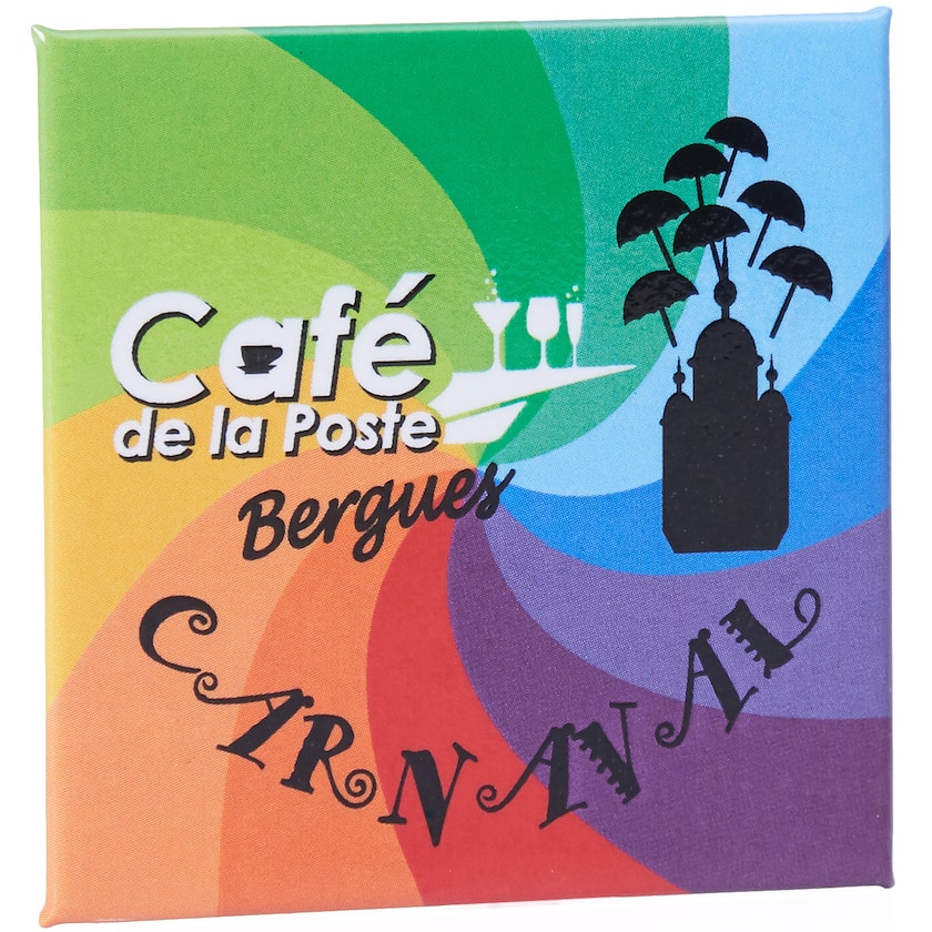 Kvadratisk magnet med trykk over hele overflaten. Trykket beskyttes av en UV-lakk som også gir magneten en vakker glans.