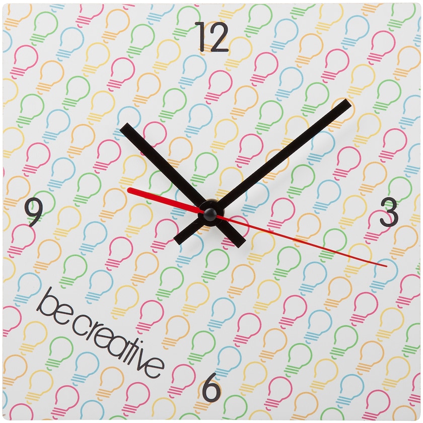 Innovativ veggklokke med digitaltrykk. Creative Square er laget av høykvalitets HDF-trefiber og hele urskiven digitaltrykkes helt etter egne ønsker. Klokken bruker et AA-batteri (ikke inkludert) og er laget i EU.