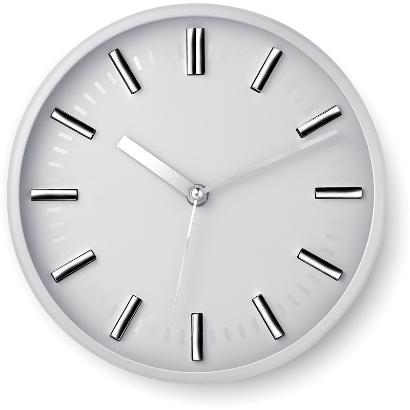 Rund, sølvfarget veggklokke i moderne design. Drives med 1 stk AA-batteri (inngår ikke).