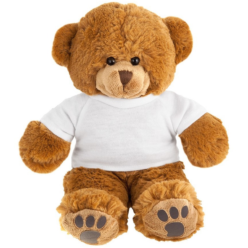 Brun bamsebjørn med hvit t-skjorte. Trykket skjer på bamsens t-skjorte (leveres separat). Bestill bamser med eget trykk!
