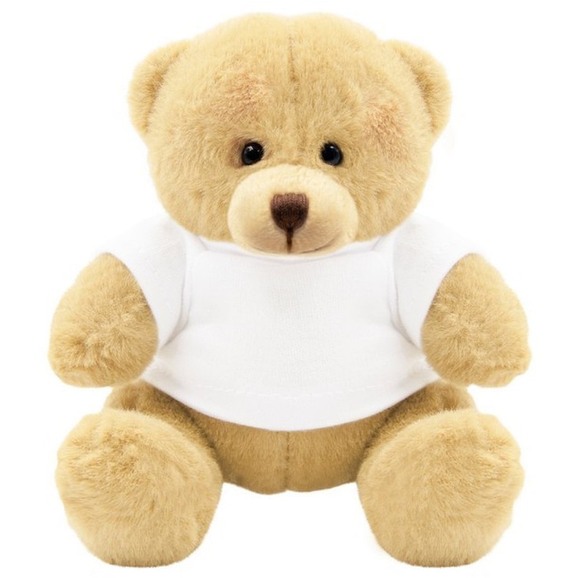 En koselig bamse med eget trykk som man gjerne klemmer lenge og godt. Trykket skjer på bamsens t-skjorte (leveres separat).