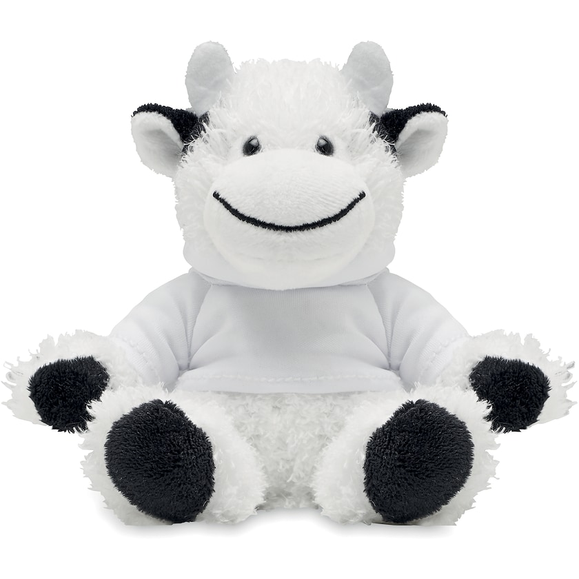 Koselig ku med hvit hettegenser. Trykket gjøres på hettegenseren. Perfekt til barn som liker kuer.