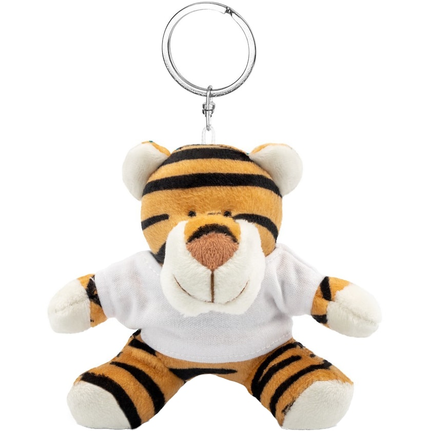 Liten, koselig tiger på nøkkelring. Trykket skjer på t-skjorten. T-skjorten leveres separat fra kosedyret.