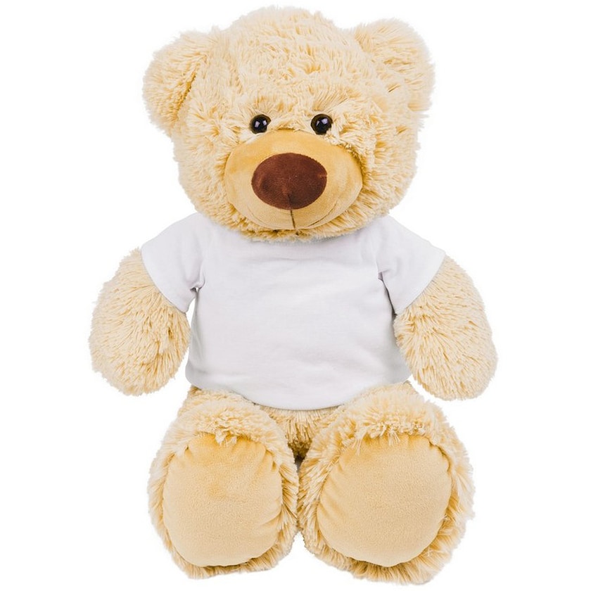 Koselig kosebamse med hvit t-skjorte. Wilmer er laget av et mykt plysjstoff og er veldig behagelig å klemme. Trykket gjøres på t-skjorten. T-skjorten pakkes separat fra kosebamsen.