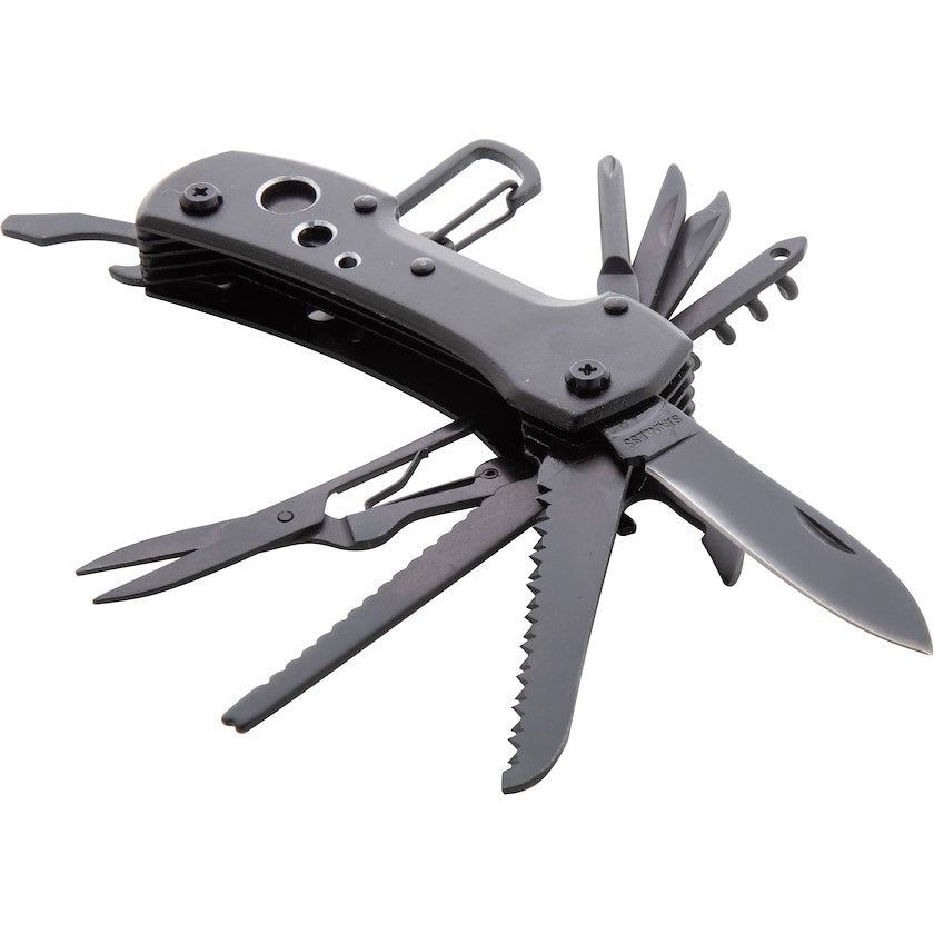 Helsvart lommekniv med 13 funksjoner. Elburn er laget av rustfritt stål, foruten håndtaket som er laget av aluminium. Merking kan enten gjøres med lasergravering eller 2-fargetrykk.