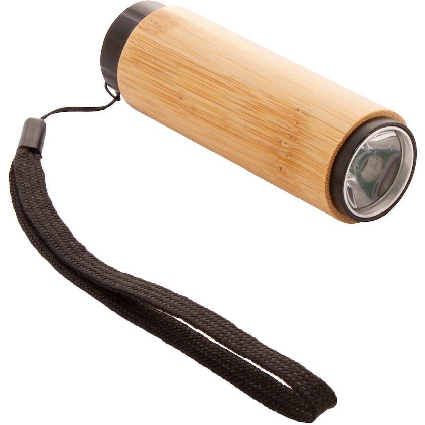 Liten lommelykt av aluminium og bambus. Lommelykten har en kraftig COB-LED lampe som bruker 3 stk. AAA-batterier (inkludert).