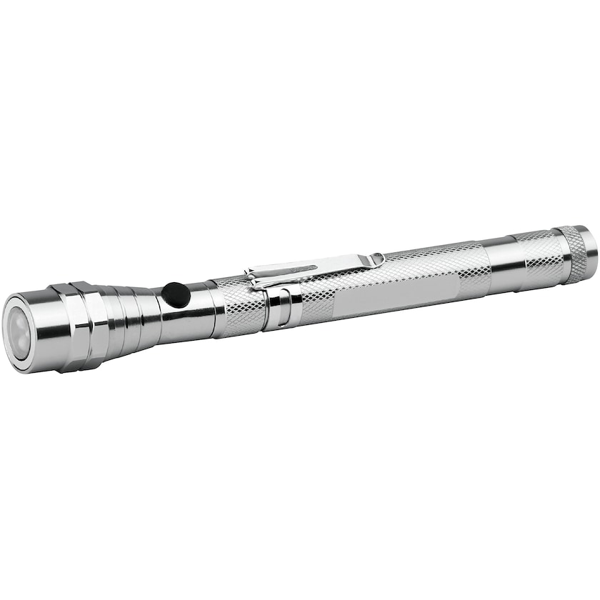 Teleskoplommelykt med 3 stk LED-pærer. Electra er utstyrt med magnet og kan vinkles slik at den gir lys på de mest utilgjengelige steder. Lommelykten er laget av kun metall.