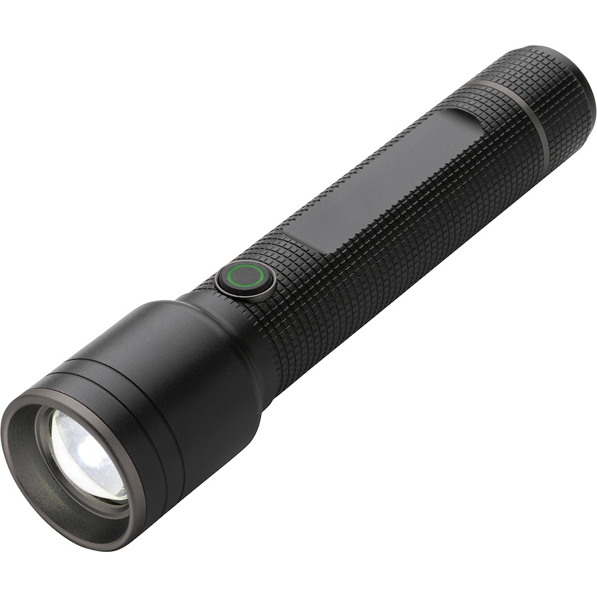 Eksklusiv lommelykt av resirkulert aluminium. Lommelykten lades via USB-uttak, og styrke på 800 lumen og har en rekkevidde på opptil 500 meter. Lyset har 5 nivåer. Lommelykten kan brukes i 8 timer på én lading. Takket være IP4-sertifisering, kan lommelykten brukes utendørs uten problemer.