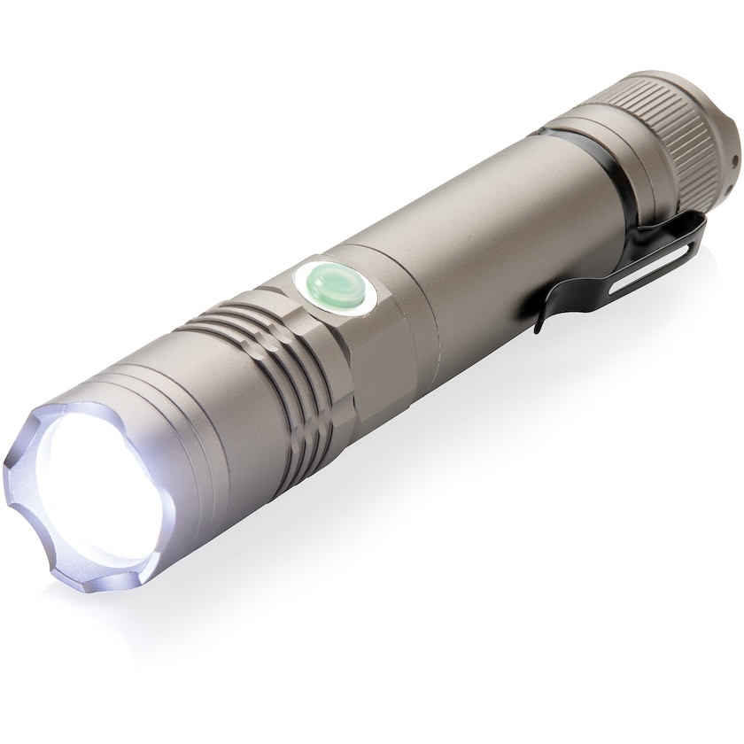 Oppladbar lommelykt 3W. Greyson klarer å lyse opptil 200 meter og har lysnivåer: fullt, halvt og blinkende lys. Batteriet klarer opptil 8 timers bruk på én lading. Lading tar ca. 2 timer. Lommelykten er IPX 4-klassifisert, noe som gjør at den kan brukes i dårlig vær. Ladekabel, mikro-USB, er inkludert.