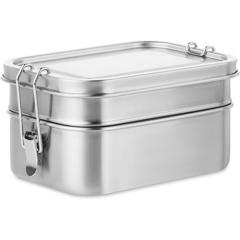Stor matboks av rustfritt stål. Somerton rommer 120 cl fordelt på to oppbevaringsrom. Merking gjøres enten med epoksydekket digitaltrykk eller lasergravering. Matboksen tåler oppvaskmaskin og vanlig stekeovn, men ikke mikrobølgeovn.