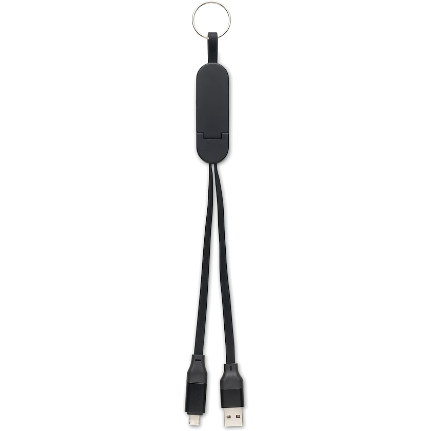60W-ladekabel av resirkulert ABS. Fungerer også som mobilstativ. Inngang: 2-i-1 USB C og USB-A utgang: USB-C og mikro-B (2 i 1 plugg)