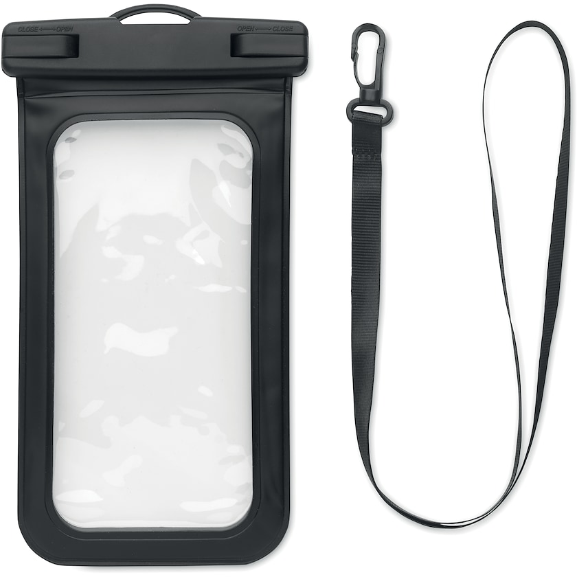 Vanntett mobillommelykt med avtakbar reim. Vanntett i henhold til IPX8-klassifisering. Passer til mobiltelefoner med maksimalt 6,7'' skjerm. Det er bare mulig med 1-fargetrykk.