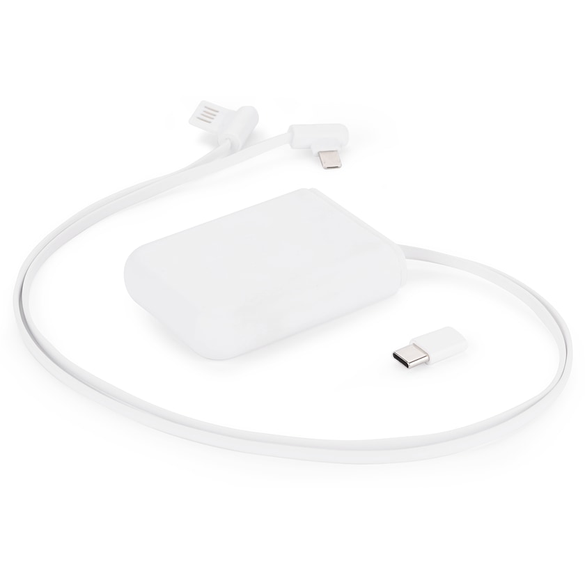 Praktisk ladekabel i smart oppbevaringsboks. Består av en USB-kabel med mikro-USB, lightning-kontakt og USB-C kabel. Kablene trekkes automatisk tilbake i oppbevaringsboksen når de ikke er i bruk.