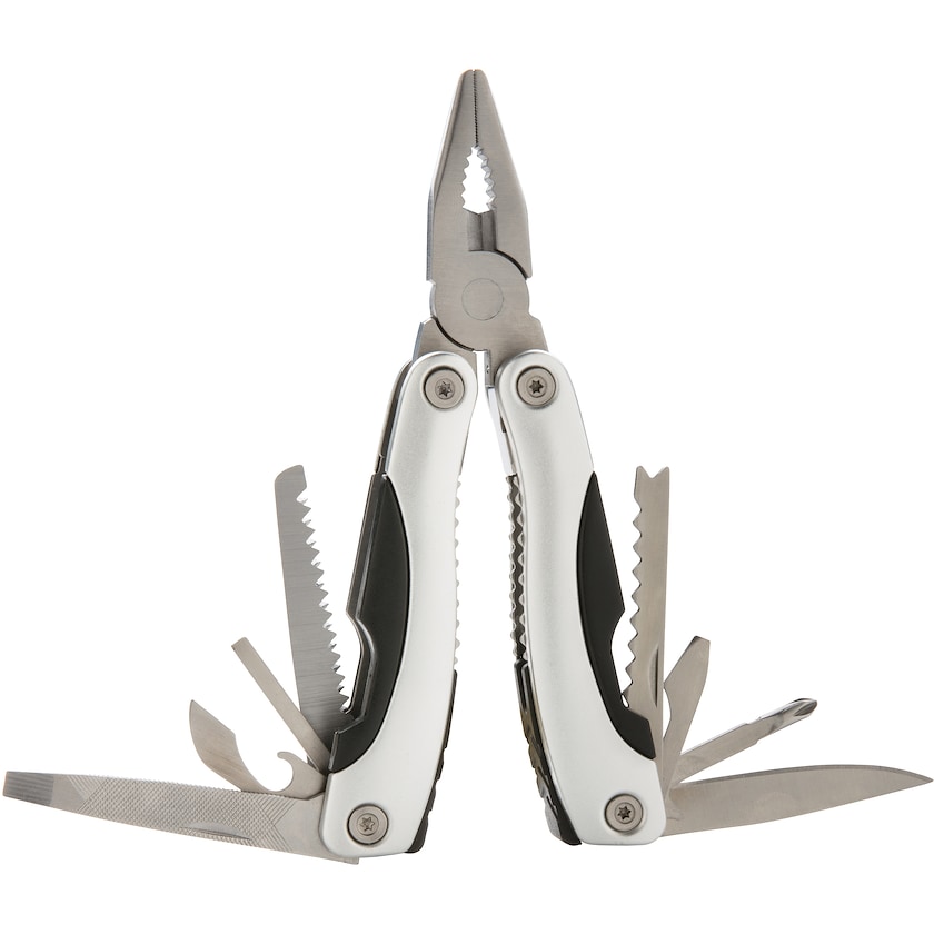 Multiverktøy av aluminium med 14 funksjoner. Leveres i et praktisk oppbevaringsfutteral.
