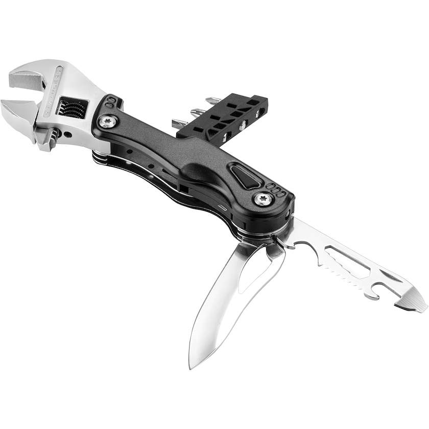 Multiverktøy med blant annet en skiftenøkkel. River har ni smarte funksjoner. Leveres med et praktisk oppbevaringsfutteral.