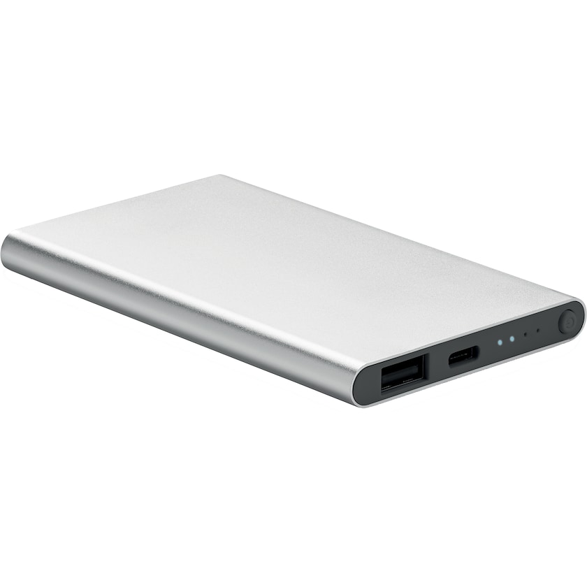 Tynn powerbank av aluminium. Leveres med mikro USB-kabel. Støtter den siste hurtigladerteknologien.
