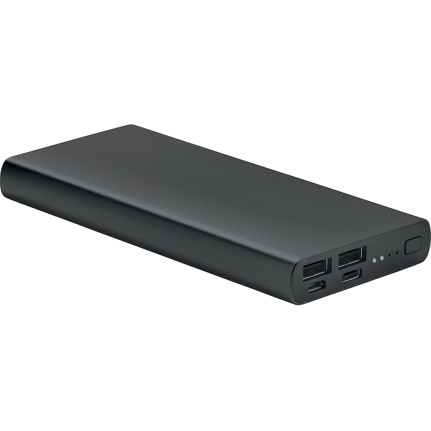 Kraftig powerbank av aluminium. Støtter hurtiglading. Leveres med mikro USB-kabel.