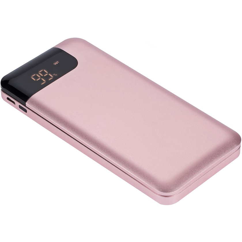 Elegant og meget kraftig powerbank av metall med digitalt display. Det digitale displayet viser i prosent hvor mye lading som er igjen. Powerbanken har en innebygget mikro-USB-kabel. Oppfyller alle EU-direktiver, er CE-merket og har ett års garanti. En ekstra, ekstern mikro-USB-kabel følger med. Input: 5V/2.1A, output: 5V/2.1A. Merking skjer med lasergravering.
