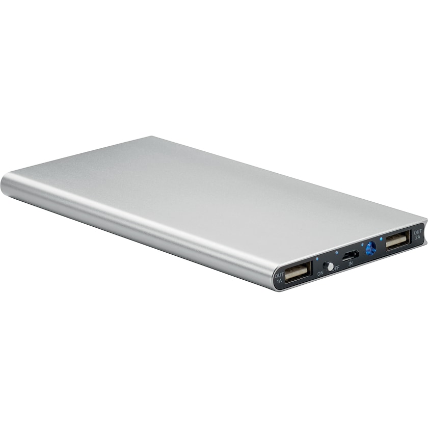 Solcelledrevet powerbank med trykk av aluminium. Kan lade smarttelefoner. Kapasitet ut: DC5V / 2A. Micro-USB-kabel inngår. En kraftig solcelledrevet powerbank i høy kvalitet!