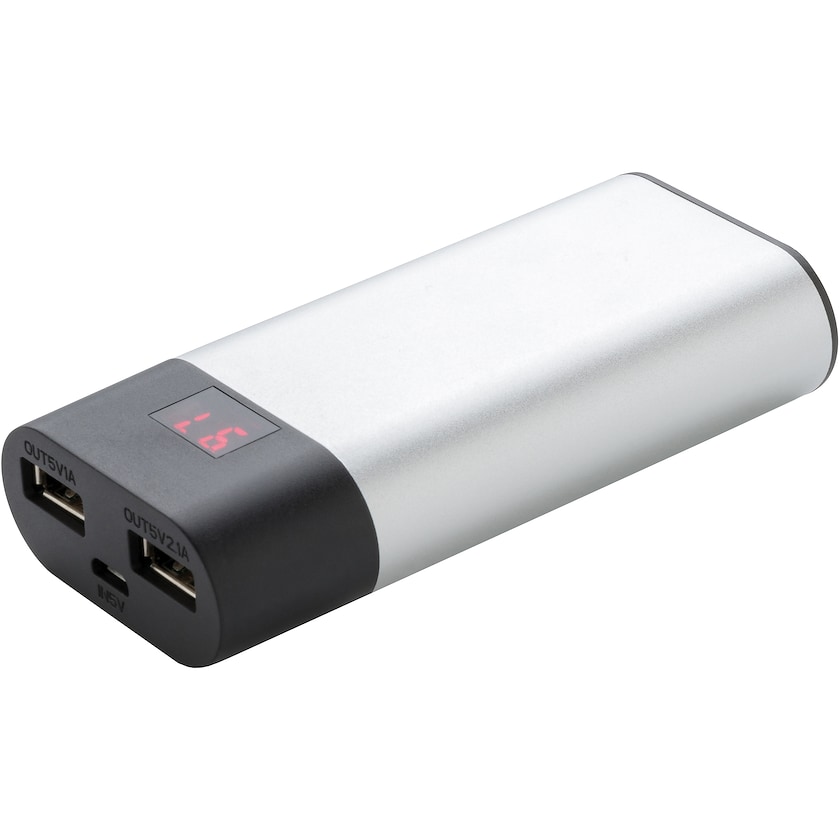 Kraftig powerbank med LED-skjerm som viser effektnivået. Powerbanken har doble USB-porter, som gjør at man kan lade to mobile enheter samtidig. Uteffekt: 5 V/2 A, inneffekt: 5 V/1 A. Leveres i pen gaveeske.